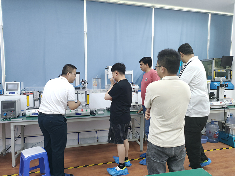 在客戶到來前,公司與印度客戶積極溝通。明確了客戶希望深入了解設備性能、應用場景及技術參數等考察需求,并精心規劃了行程。與此同時,公司內部緊鑼密鼓地籌備。技術人員對防水測試機和氣密性檢測儀進行多輪精細調試,確保設備以最佳狀態展示;銷售人員整理各類詳盡資料,涵蓋產品手冊、成功案例等,為客戶提供全面信息。